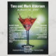 © Socialite Designs and Third-Party Photo. Professional bartender promotional leaflet design has bold photo of an alcoholic drink that is splashing liquid. The photo incorporates a vignette with bokeh with colours of green and grey. The front page lists the name of the event host along with the date of the event. The front also incorporates the ingredients of 3 cocktails of your choice. The design on the back has your contact information. You can change out the font style to create a unique identity. If you need help with customising this leaflet, please do not hesitate to contact Socialite Designs.