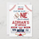 Ready for a cool sports birthday party? This design features a handpainted classic white background, navy blue and red text, a baseball, stars, a helmet with bat and ball illustrations, and "Hitting the big one", and "Swing over" typography. All text is editable on this birthday invite and budget-friendly postcards are available too! This design is for any age, gender-neutral, and is fully customisable for 1st birthday, 2nd birthday, and older kids. Find matching items in my shop.
