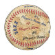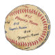 Personalised Baseball with ALL Player's and Coach Names and Message or Delete. Perfect Gifts for Baseball Coaches. Old vintage looking personalised baseball with the Team Name, Coach's Name and Thank You Message and ALL baseball player's names Typed into the 19 text boxes to your right. It looks like each player signed the baseball in 3 different faux ink colours. Unique baseball coach gifts. You can CHANGE the colour of the text from black, red and blue to any colour. CALL Rodney or Linda to HELP you or we can redesign it for you in YOUR TEAM COLORS.
