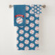 Hit a home run with the Baseball All-Star Bath Towel Set designed by Enchantfancy Design Company. This sports themed towel set features a baseball with your choice of name on a red banner with the words "baseball all-star" on the hand towel, and a pattern of baseballs on the bath towel and wash cloth. It will add a sporty touch to kids baseball themed bathroom decor. Customise to choose your choice of background colour!