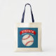 Hit a home run with the Baseball All-Star Tote Bag designed by Enchantfancy Design Company. This sports themed tote features a baseball with your choice of name on a red banner with the words "baseball all-star" underneath. It makes a fun gift for the athlete or sports fan in your life. This bag is also a great party favour for baseball themed parties. Customise to choose your choice of background colour.
