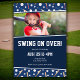 This fun baseball and bat pattern birthday party invitation shows the sports equipment in a pattern on dark blue. Add your event details on top, like the party's date, time, and location. For a personalised touch, add a photo of your young birthday boy or girl! This invitation adds a great touch to a birthday, sports team, Christmas, or other holiday party.