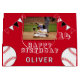 Baseball Ball Bunting Flags Red Photo Birthday Gift Bag. Two baseball balls and birthday party bunting flags in red, black and white colours on red. Add your photo and personalise it with your name, age and text and make your own birthday gift bag. Great for boys and girls who love baseball.