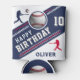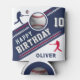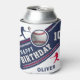 Modern Baseball Ball Player Themed Birthday Can Cooler. Celebrate in style with this sleek baseball-themed birthday can cooler design! Featuring a navy blue, red and white colour scheme, bold lettering, and realistic baseball graphics, this sporty design is perfect for any baseball fan. The cooler showcases dynamic player silhouettes, a 3D baseball and stripe details. Whether for a kid’s party or an adult baseball lover, this premium and customisable design is a home run for any birthday celebration!