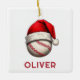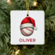 Baseball Ball Red Santa Hat Name Christmas Ceramic Ornament