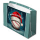 Baseball Ball Red Santa Hat Name Christmas Large Gift Bag