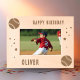 Baseball Ball Sports Happy Birthday Etched Frames. A personalised wood photo frame as a birthday gift. It has two baseball balls in the corners and a custom name.