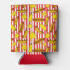 Cool can cooler printed all over with hand drawn weiner hot dogs, mustard bottles and splashes of mustad, over red and white stripes. The perfect can coolers grill outs, barbecues and baseball ballpark games
