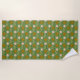 Baseball bats, gloves and balls make up this fun green beach towel. Customisable so you can add your own text and change the background colour. Soak up the sun with this cool design!