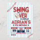 Ready for a cool sports birthday party? This design features a handpainted classic white background, navy blue and red text, a baseball, stars, a helmet with bat and ball illustrations, and "Hitting the big one", and "Swing over" typography. All text is editable on this birthday invite and budget-friendly postcards are available too! This design is for any age, gender-neutral, and is fully customisable for 1st birthday, 2nd birthday, and older kids. Find matching items in my shop.