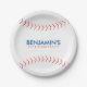 Fun party paper plates featuring an illustration of baseball. Personalise them with your child's name and text of your choice for a complete one of a kind look.
