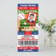 Baseball Photo Birthday Ticket Invitation in navy blue, red, and black. Text font style and colour can be personalised.