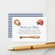 Hit a grand slam with your baby shower guests with these adorable "Books for Baby" enclosure cards. The vintage-inspired watercolor design showcases a baseball glove, bat, and helmet, evoking a sense of nostalgia and sporty fun. Encourage guests to bring a book to help start your baby's library, making each story a cherished keepsake. The elegant script and classic typography are set against a clean white background, with a chic navy and white stripe pattern on the reverse side. These cards are a fantastic way to incorporate your love for baseball into your special celebration.
