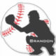 Baseball Catcher Design Contour Sticker with optional text, available in various sizes.