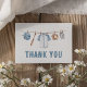Say thank you to friends and family for celebrating the little one on the way with this baseball themed baby shower thank you card.