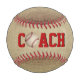 Old baseball in Coach Text on sepia background with team name on the reverse side.