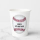 Baseball sports themed paper cups, with graphics of the red stitching of a baseball, on the white cup. Personalise the black text for your special baseball themed event, matching paper napkins, plates and invitations are available.