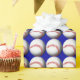 This customisable wrapping paper features a pattern of baseballs on a navy blue background. Easily customise the background colour by clicking Customise It, Edit, Background. Add a name or other text by clicking Customise It, Add Text.