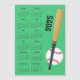 Baseball Design 2025 Calendar Magnetic Card with customisable background colour.