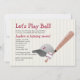A sporty invitation that will delight every baseball fan. The off-white, striped background hosts a bat, ball and cap with the birthday year on it.