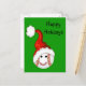 Baseball or softball wearing a Santa hat and a happy smile sports fan Christmas postcard. Text can be easily changed or removed