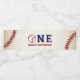 Baseball First Birthday beverage labels.Take me out to the ballgame! This napkin is created with a vintage background texture, baseball stitch accents with "One" in the centre, the "O" is replaced with a baseball. Customise the text to say whatever you would like.