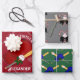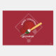 Personalizable christmas gift wrap with baseball theme - 3 sheets. Two sheets feature mistletoe, a baseball diamond, cap, bat and ball, the third sheet has red and white candy canes, baseball and a black bow. Background colours we selected are red, green and grey, but you have the option of changing those. Be sure to add your text at the personalise prompt. Designed for you by HAMbyWhiteGlove