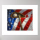 The image is from an acrylic painting, titled "America's Game", by award winning artist, Bill Tomsa, and depicts a well worn baseball, bat and glove on an American flag. It is sure to hang with pride and affection on any baseball fan's wall who loves what we know as America's Pastime.