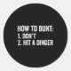 Baseball Humor How To Bunt Don't Hit A Dinger Funn Classic Round Sticker