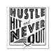 Text reads: Hustle, Hit And Never Quit, with crossed baseball and softball bats icon.