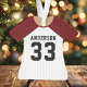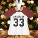 Baseball Jersey Sports Team Uniform Ornament. This baseball jersey ornament is perfect for anyone who plays school sports or loves watching sports. Personalise this custom design with your own team name and jersey number.