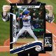 Experience the essence of America's favourite pastime with our custom baseball poster, meticulously designed to celebrate the sport's legacy. Encased in a sleek black frame, the vibrant blue and white accents evoke the spirit of the game, creating a captivating visual tribute to your favourite player. At the top, the player's name and position command attention in a dynamic, customisable san-serif font, adding a personalised touch that resonates with fans and players alike.