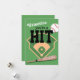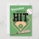 Kids classroom valentines day card featuring a green background that can be changed to any colour, a sports playing field, bat, baseball, the saying "valentine you're a hit", and the name of who its from.
