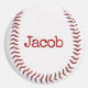 Close-up of a baseball with a customised name.