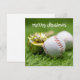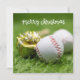 Baseball Merry Christmas with ball on Green grass Holiday Card