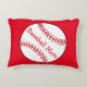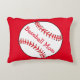 This accent pillow features a red and white baseball surrounded by a red background. The image is repeated on the back. The text reads: Baseball Mum. Easily customise the text for a special sports fan or remove entirely. Great for Mother's Day or any time of year!