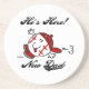New dads of baby boys who love baseball will get a kick out of our Baseball New Dad T-shirts, hoodies, mugs, cards, stickers, tote bags, buttons, and other new dad apparel and gifts featuring a baseball in a baseball cap and text reading "He's Here! New Dad".