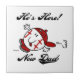 New dads of baby boys who love baseball will get a kick out of our Baseball New Dad T-shirts, hoodies, mugs, cards, stickers, tote bags, buttons, and other new dad apparel and gifts featuring a baseball in a baseball cap and text reading "He's Here! New Dad".