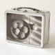 This is a standard metal lunchbox that appears to work just fine. We designed this box ourselves with an uploaded photo and custom text on the front and back. It looks absolutely beautiful except the front of the lunchbox is not centered like it shows in the photo. The print borders don't align with the inset flat part of the box where the preview photo online showed it perfectly centered in there. The back looks nice and centered though.