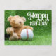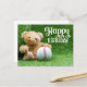 Baseball on Green grass for Birthday Teddy Bear Postcard