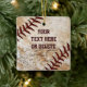 Baseball Ornaments Your Text and Photo on Back or leave it blank. Cool vintage looking square baseball Christmas Ornaments personalised with your text and if you want, your Photo on the back. An almost stone looking baseball design with baseball stitches and type in your text, team name, year, jersey number and each players name with a team photo or photo of the baseball player on the back. CALL Rod and Linda to make changes for you or to add your photo: 239-949-9090.
