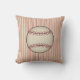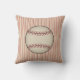A vintage style baseball decorates this red and cream striped pillow. The design is from original art.