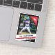 At the top right corner, a bold red field serves as the backdrop for the customisable player uniform number, elegantly rendered in dynamic white san-serif font. Below, three crisp stripes of white and vibrant red create a captivating visual contrast, with the team name, player name, and player position expertly showcased in contrasting black and white san-serif fonts. Completing the design is the customisable year at the bottom right, rendered in a sophisticated white dynamic san-serif font. With its white outline, this laptop sticker seamlessly integrates with your device, making it a stylish statement piece and an ideal gift for any baseball aficionado.