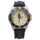 Has heft and feel of expensive stainless steel quartz wrist watches. Solid construction and good looks. Although it had a really top quality rubber strap, I substituted a stainless steel "Shark" style mesh strap, which I think is the most comfortable strap available. Perfect. True colors of original image. Clear, crisp image precisely aligned and spaced.