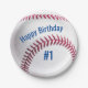 This fun round baseball paper plate is sure to be a hit with its striking design in All American Red, White and Blue. It is the perfect party plate for your little Boy's baseball themed Birthday Party. The white baseball has classic red stitching and the blue "Happy Birthday" can be personalised with your Child's Name and the # can be customised for his age.