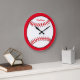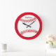 This round wall clock features a red and white baseball surrounded by a red circle. Easily customise the text for a special sports fan or remove entirely.