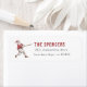 Bring festive flair to your holiday mail with this Baseball Santa return address label by Redwood & Vine Design Co. Featuring a watercolor Santa swinging a bat and customisable text for your family name and address, this cheerful label adds a playful sports twist to Christmas cards, team mailings, and seasonal packages. A perfect way for baseball fans to spread holiday spirit—one envelope at a time.