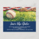 Announce your special day with a playful and patriotic twist! This Baseball Save the Date card features a classic baseball resting on lush green grass with the American flag waving proudly in the background. Perfect for sports fans, baseball enthusiasts, or couples celebrating their engagement or wedding with a fun, sporty, and patriotic theme. Bright modern watercolor style adds charm and vibrant colour to make your announcement memorable.