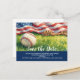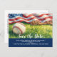 Announce your special day with a playful and patriotic twist! This Baseball Save the Date card features a classic baseball resting on lush green grass with the American flag waving proudly in the background. Perfect for sports fans, baseball enthusiasts, or couples celebrating their engagement or wedding with a fun, sporty, and patriotic theme. Bright modern watercolor style adds charm and vibrant colour to make your announcement memorable.