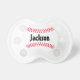 I bought this as a gift for my friend's grandson. His daddy loves to play baseball so this was perfect! With the pacifier being so small, I was afraid you might not be able to read the name but it looks great!!